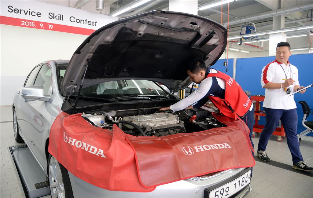 자체 기술 서비스 인력의 실력 향상을 통해 고객에 대한 서비스 만족도를 높이기 위해 혼다코리아가 매년 실시하고 있는 '서비스 스킬 컨테스트' 모습