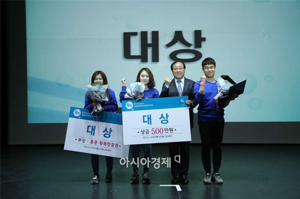 [아시아경제 김현정 기자] 애경의 헤어클리닉 브랜드 케라시스에서 대학생 및 대학원생을 대상으로 개최한 '제9회 케라시스 마케팅 공모전'이 지난 6일 서울 삼성동 백암아트홀에서 개최했다. 케라시스 마케팅 공모전은 단순한 아이디어 공모에 그치지 않고 실제 제품으로 구현될 수 있는 적극적인 검토가 이뤄진 열린 공모전이다. 업무역량을 펼칠 수 있는 입사기회 제공 등의 사례를 배출하며 2003년부터 개최됐다.이번 공모전은 '리얼 마케팅'을 테마로 마케터를 꿈꾸는 대학생 및 대학원생에게 현업에 필요한 마케팅 역량을 발휘할 수 있는 기회를 제공하기 위해 마련됐다. ▲케라시스 브랜드와 제품 라인을 고려한 신제품 및 연계 프로모션 전략 ▲리미티드 에디션 및 콜라보레이션을 통한 한정판 기획제품과 프로모션 전략 ▲다양한 커뮤니케이션 툴을 활용한 케라시스의 브랜드 인지도 향상 및 판매활성화 전략을 유통채널과 연계시킨 아이디어 제안 등이 과제로 부여됐다. 마감결과 363개팀 1089명이 공모에 참가했으며, 본선에는 12개 팀이 진출했다.대상 수상자는 스포츠에 특화된 기능적 전문성을 갖춘 프리미엄 샴푸를 제안한 이문혁(건국대 기술경영학과 4), 김윤정(홍익대 목조형가구학과 4), 장하원(홍익대 디자인학부 시각디자인전공 4)으로 구성된 '끄응차조'팀이 선정돼 상금 500만원과 홍콩 왕복항공권 및 애경 인턴십 기회를 얻었다.금상에는 개인별 모발 PH 상태에 맞춘 기능성 샴푸를 제안한 '플러스 알파(+alPHa)' 팀이 선정돼 상장과 상금 300만원을 수상했다. 은상에는 탄산기포 성분 함유로 빠르고 간편하게 머리를 감을 수 있는 샴푸를 발표한 '노다지' 팀과 명화를 삽입한 패키지와 천연 아로마 오일 성분으로 힐링을 주는 테라피 제품을 발표한 '힐링메이트'팀 등 2개 팀이 수상, 상장과 상금 100만원씩이 주어졌다. 동상에는 총 3개팀이 수상해 각각 상금 50만원을 받았다. 동상 이상 수상자 전원에게는 공채 지원시 서류통과의 혜택이 주어졌다.김현정 기자 alphag@asiae.co.kr<ⓒ세계를 보는 창 경제를 보는 눈, 아시아경제(www.asiae.co.kr) 무단전재 배포금지>