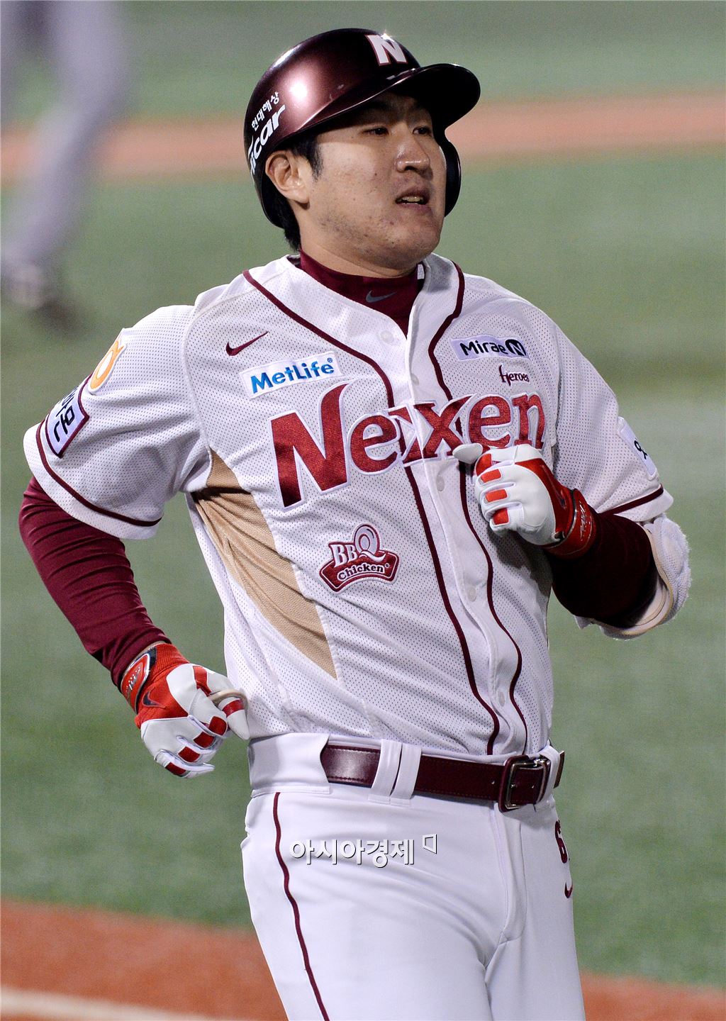[목동=아시아경제 김현민 기자] 프로야구 2015 포스트시즌 SK 와이번스와 넥센 히어로즈의 와일드카드결정 1차전이 7일 목동구장에서 열렸다. 1회말 1사 만루에서 넥센 유한준이 선취 1타점 우익수 희생플라이를 치고 타구를 바라보고 있다.김현민 기자 kimhyun81@asiae.co.kr<ⓒ세계를 보는 창 경제를 보는 눈, 아시아경제(www.asiae.co.kr) 무단전재 배포금지>