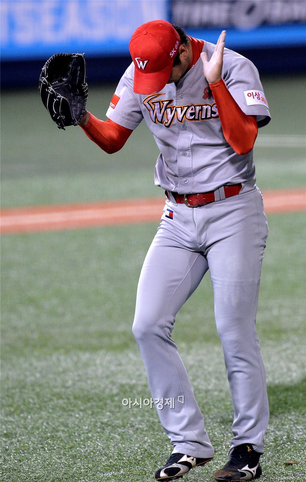 [목동=아시아경제 김현민 기자] 프로야구 2015 포스트시즌 SK 와이번스와 넥센 히어로즈의 와일드카드결정 1차전이 7일 목동구장에서 열렸다. SK 선발 김광현이 2회말 1사 1루에서 넥센 서건창을 병살타로 처리한 뒤 박수를 치고 있다.김현민 기자 kimhyun81@asiae.co.kr<ⓒ세계를 보는 창 경제를 보는 눈, 아시아경제(www.asiae.co.kr) 무단전재 배포금지>