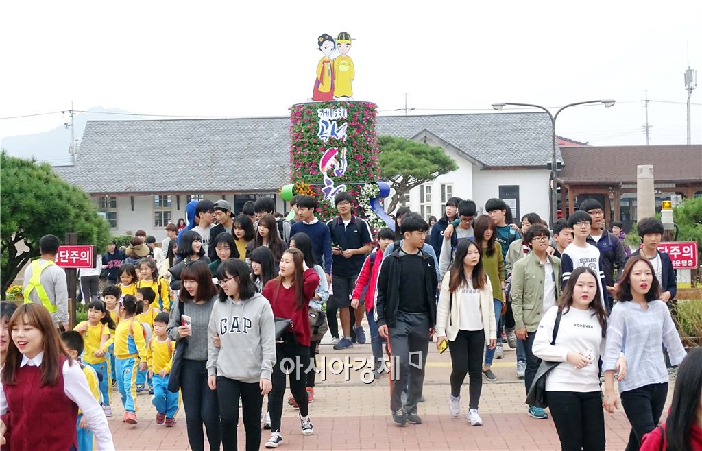 청명한 가을날씨가 이어진 가운데 한글날이자 휴일인 9일 제15회 곡성 심청축제가 열리고 있는 섬진강기차마을에 많은 관광객들이 들어오고있다.