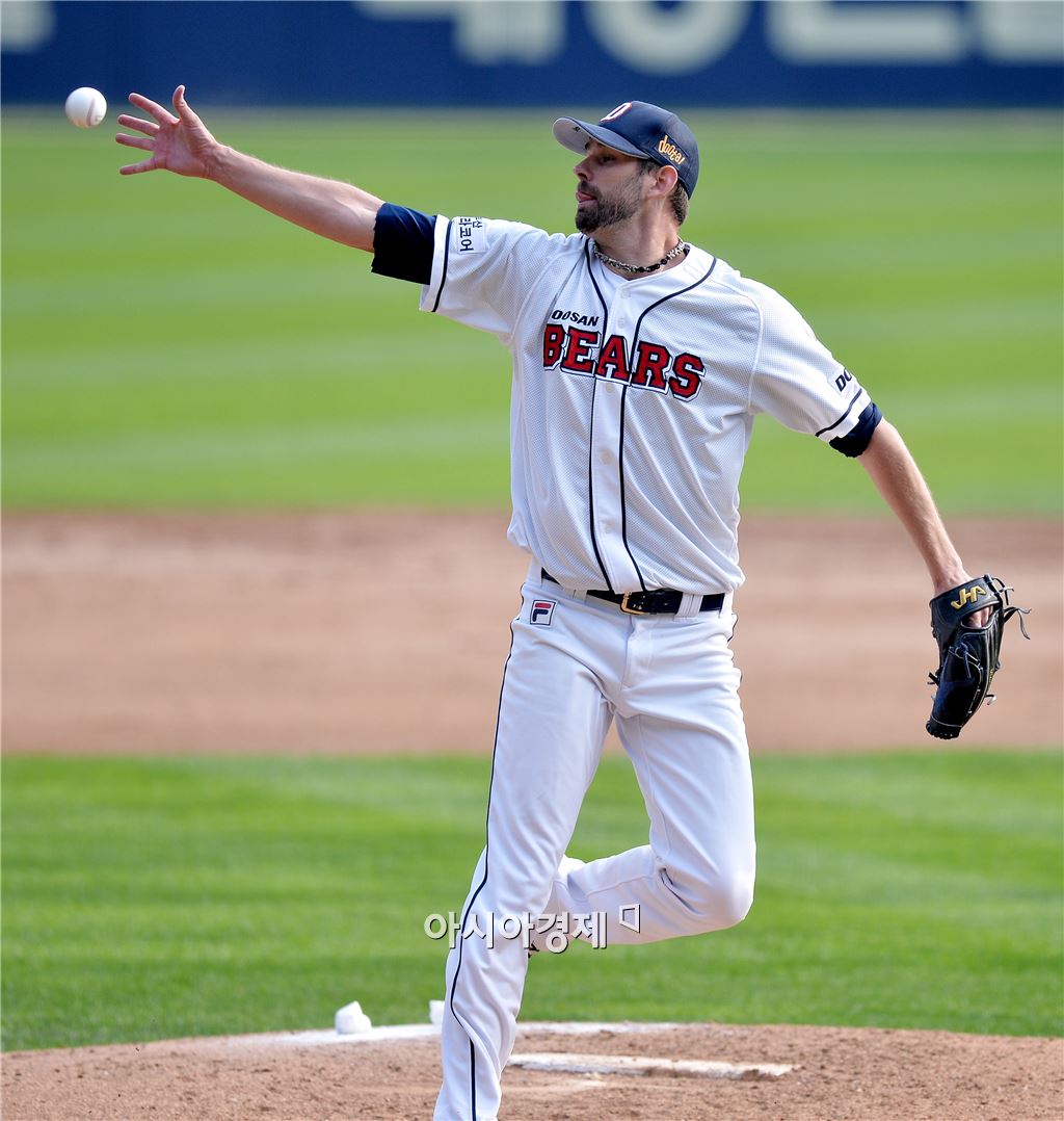 [잠실=아시아경제 김현민 기자] 프로야구 2015 포스트시즌 넥센 히어로즈와 두산 베어스의 준플레이오프 1차전이 10일 잠실구장에서 열렸다. 5회초 2사에서 두산 선발 니퍼트가 넥센 서건창의 타구를 맨손으로 잡으려 하고 있다. 김현민 기자 kimhyun81@asiae.co.kr<ⓒ세계를 보는 창 경제를 보는 눈, 아시아경제(www.asiae.co.kr) 무단전재 배포금지>