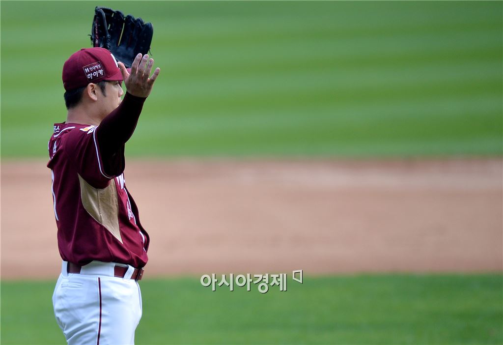 [잠실=아시아경제 김현민 기자] 프로야구 2015 포스트시즌 넥센 히어로즈와 두산 베어스의 준플레이오프 1차전이 10일 잠실구장에서 열렸다. 6회말 2사 1,2루에서 넥센 손승락이 두산 오재원을 2루수 땅볼로 처리한 뒤 환호하고 있다. 김현민 기자 kimhyun81@asiae.co.kr<ⓒ세계를 보는 창 경제를 보는 눈, 아시아경제(www.asiae.co.kr) 무단전재 배포금지>