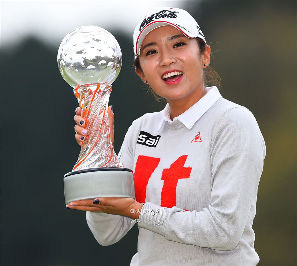 이보미가 스탠리레이디스 우승 직후 트로피를 들고 환하게 웃고 있다. 시즈오카(일본)=Getty images/멀티비츠