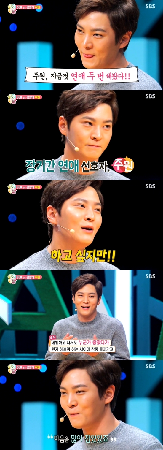 [아시아경제 온라인이슈팀] '힐링캠프'에 출연한 배우 주원이 연애 경험을 털어놨다. 12일 밤 방송된 SBS 예능프로그램 '힐링캠프-500인'에서는 '시청률 불패 사나이' 배우 주원이 출연했다.이날 방송에서 주원은 "지금까지 몇 번의 연애를 해봤느냐"는 김태희의 영상편지에 "두 번"이라고 답했다. 29살 나이에 단 두 번이라는 말에 의심이 이어지자, 주원은 "장기간 했다"고 털어놨다. 주원은 이어 "데뷔하고 나서 누군가 좋았다가 뭔가 해볼까 하는 사이에 작품 들어가고 그런 경우가 번번이 있었다"면서 "누군가와 '썸'을 탄 경우는 있다"고 고백했다.주원은 "정말로 연애를 하고 싶은데 단시간에 많은 작품을 하다보니까 마음을 많이 접었다"고 덧붙였다. 온라인이슈팀 issue@asiae.co.kr<ⓒ세계를 보는 창 경제를 보는 눈, 아시아경제(www.asiae.co.kr) 무단전재 배포금지>