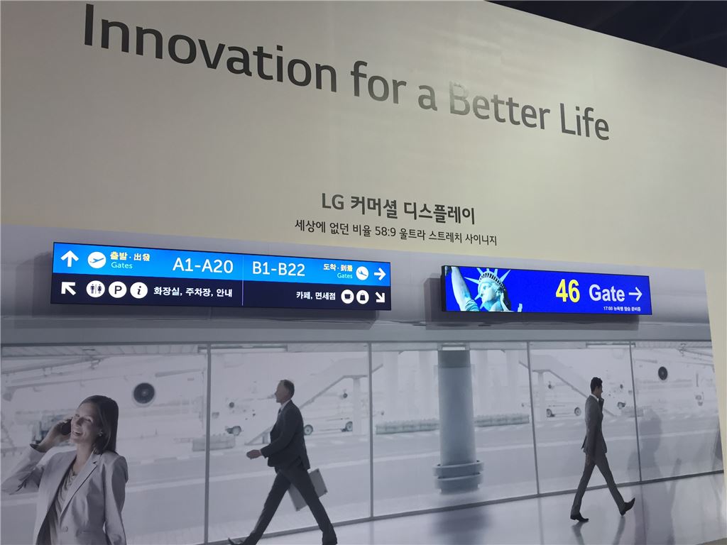 14일 한국전자전에서 LG전자가 선보인 '울트라 스트레치 사이니지'