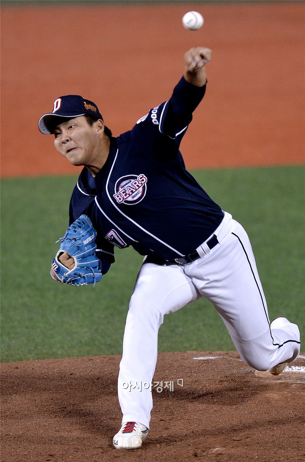 [목동=아시아경제 김현민 기자] 프로야구 2015 포스트시즌 두산 베어스와 넥센 히어로즈의 준플레이오프 4차전이 14일 목동구장에서 열렸다. 두산 선발투수 이현호가 역투하고 있다.김현민 기자 kimhyun81@asiae.co.kr<ⓒ세계를 보는 창 경제를 보는 눈, 아시아경제(www.asiae.co.kr) 무단전재 배포금지>