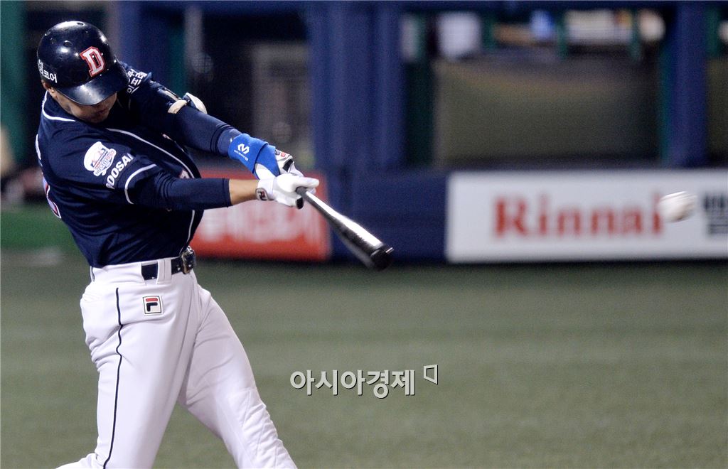 [목동=아시아경제 김현민 기자] 프로야구 2015 포스트시즌 두산 베어스와 넥센 히어로즈의 준플레이오프 4차전이 14일 목동구장에서 열렸다. 2회초 1사 2루에서 두산 김재호가 추가 1타점 적시타를 치고 있다.김현민 기자 kimhyun81@asiae.co.kr<ⓒ세계를 보는 창 경제를 보는 눈, 아시아경제(www.asiae.co.kr) 무단전재 배포금지>
