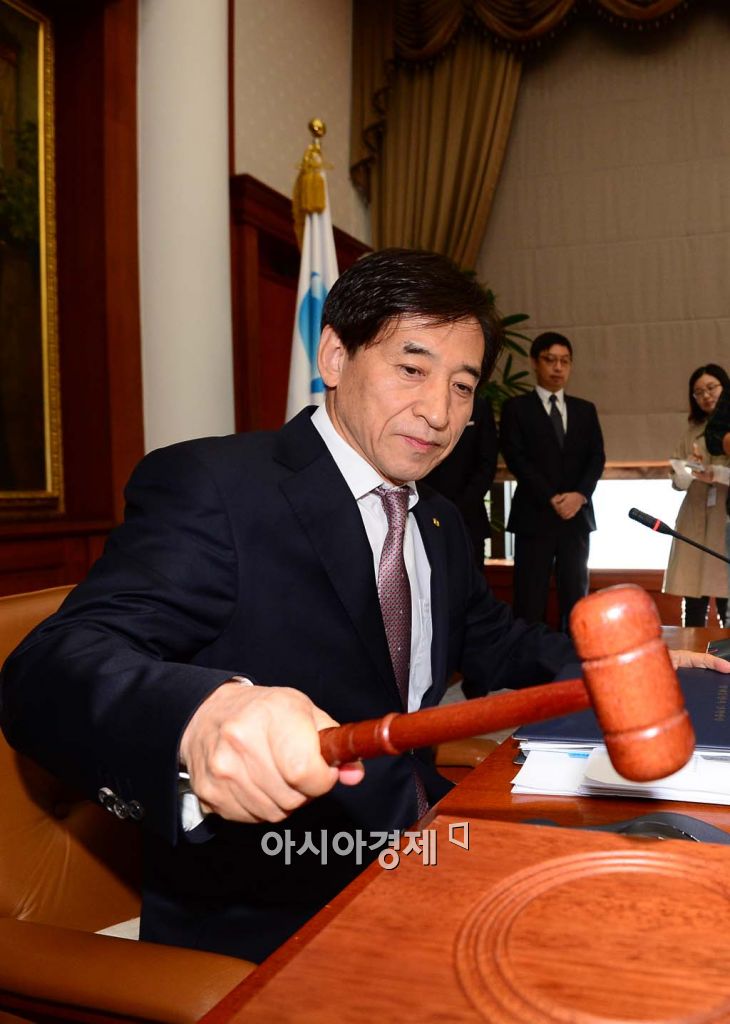 [아시아경제 백소아 기자] 이주열 한국은행 총재가 15일 서울 중구 한국은행 본관에서 열린 금융통화위원회 본회의에서 의사봉을 두드리고 있다.백소아 기자 sharp2046@asiae.co.kr<ⓒ세계를 보는 창 경제를 보는 눈, 아시아경제(www.asiae.co.kr) 무단전재 배포금지>