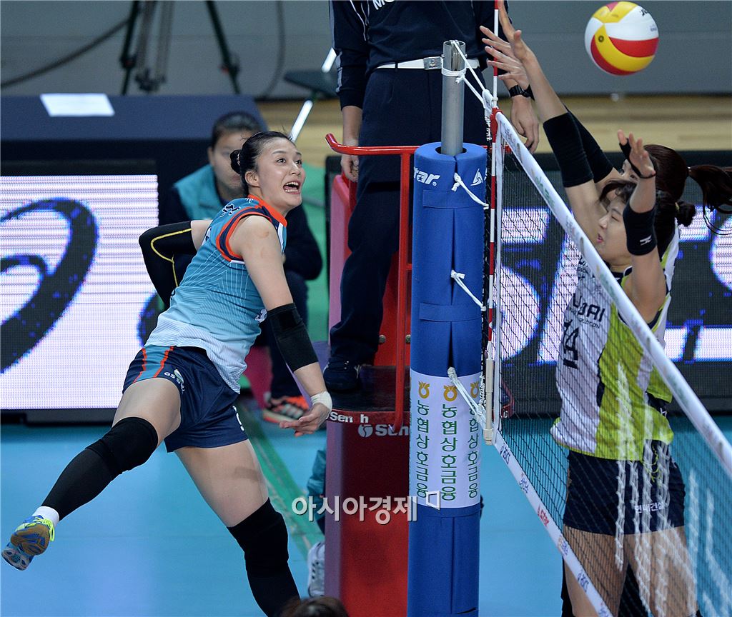 [장충=아시아경제 김현민 기자] 프로배구 2015-2016 V리그 여자부 GS칼텍스와 현대건설의 경기가 15일 장충체육관에서 열렸다. GS칼텍스 표승주가 상대 블로킹을 뚫고 공격하고 있다. 김현민 기자 kimhyun81@asiae.co.kr<ⓒ세계를 보는 창 경제를 보는 눈, 아시아경제(www.asiae.co.kr) 무단전재 배포금지>김현민 사진기자 kimhyun81@asiae.co.kr<ⓒ아시아 대표 석간 '아시아경제' (www.newsva.co.kr) 무단전재 배포금지>