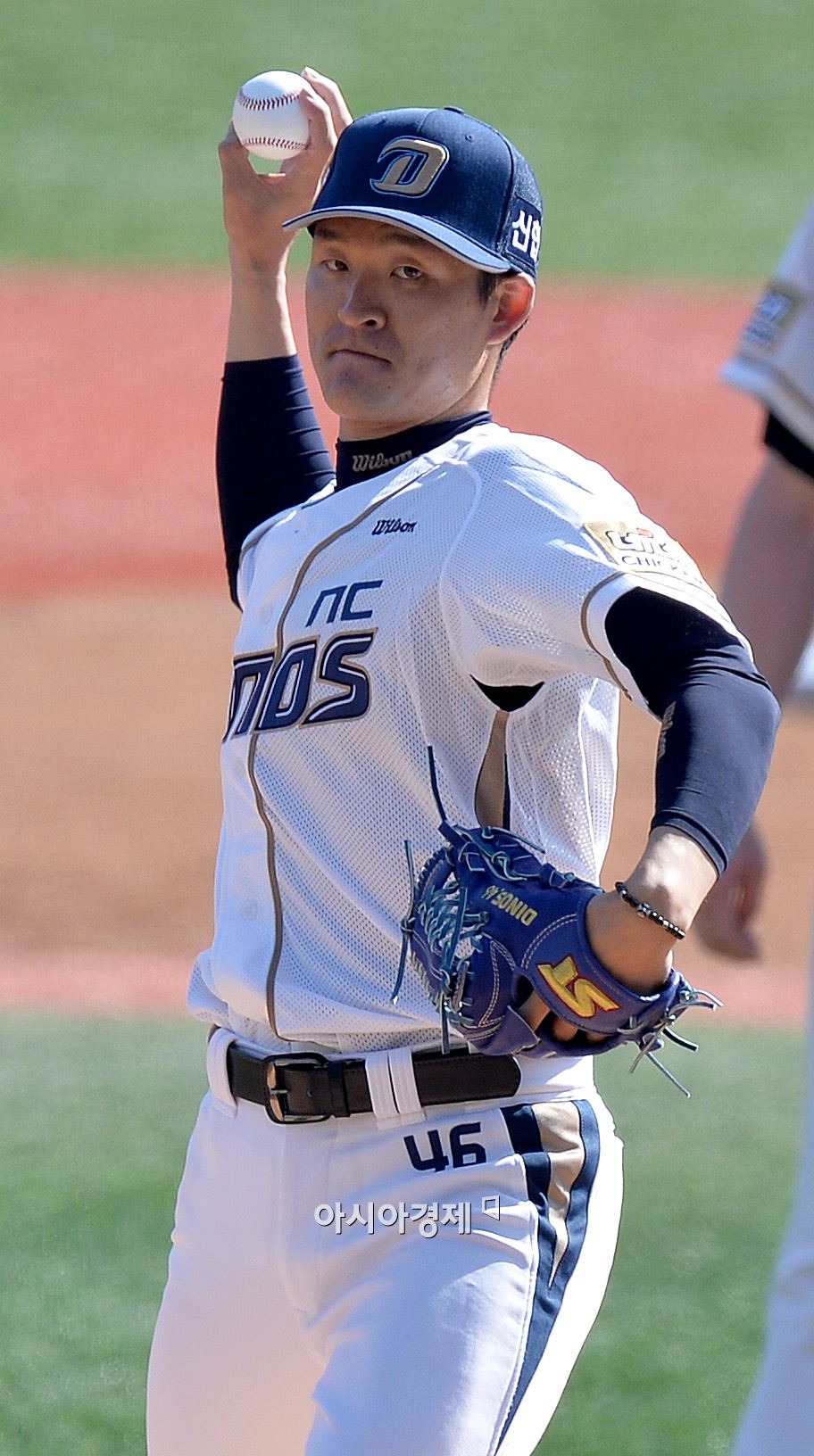 [마산=아시아경제 김현민 기자] 프로야구 2015 포스트시즌 두산 베어스와 NC 다이노스의 플레이오프 1차전이 18일 마산야구장에서 열렸다. NC 원종현이 시구하고 있다. 원종현은 2월 미국 전지훈련 중 대장암이 발견돼 수술을 받았고, 최근 완치 판정을 받았다. NC는 시즌 초 그의 쾌유를 기원하고 팀과 함께 한다는 뜻으로 '155K' 상징을 만들어 선수단 모자에 새겼다. 이는 원종현이 지난해 포스트시즌에서 던진 155km 강속구를 뜻한다.김현민 기자 kimhyun81@asiae.co.kr<ⓒ세계를 보는 창 경제를 보는 눈, 아시아경제(www.asiae.co.kr) 무단전재 배포금지>