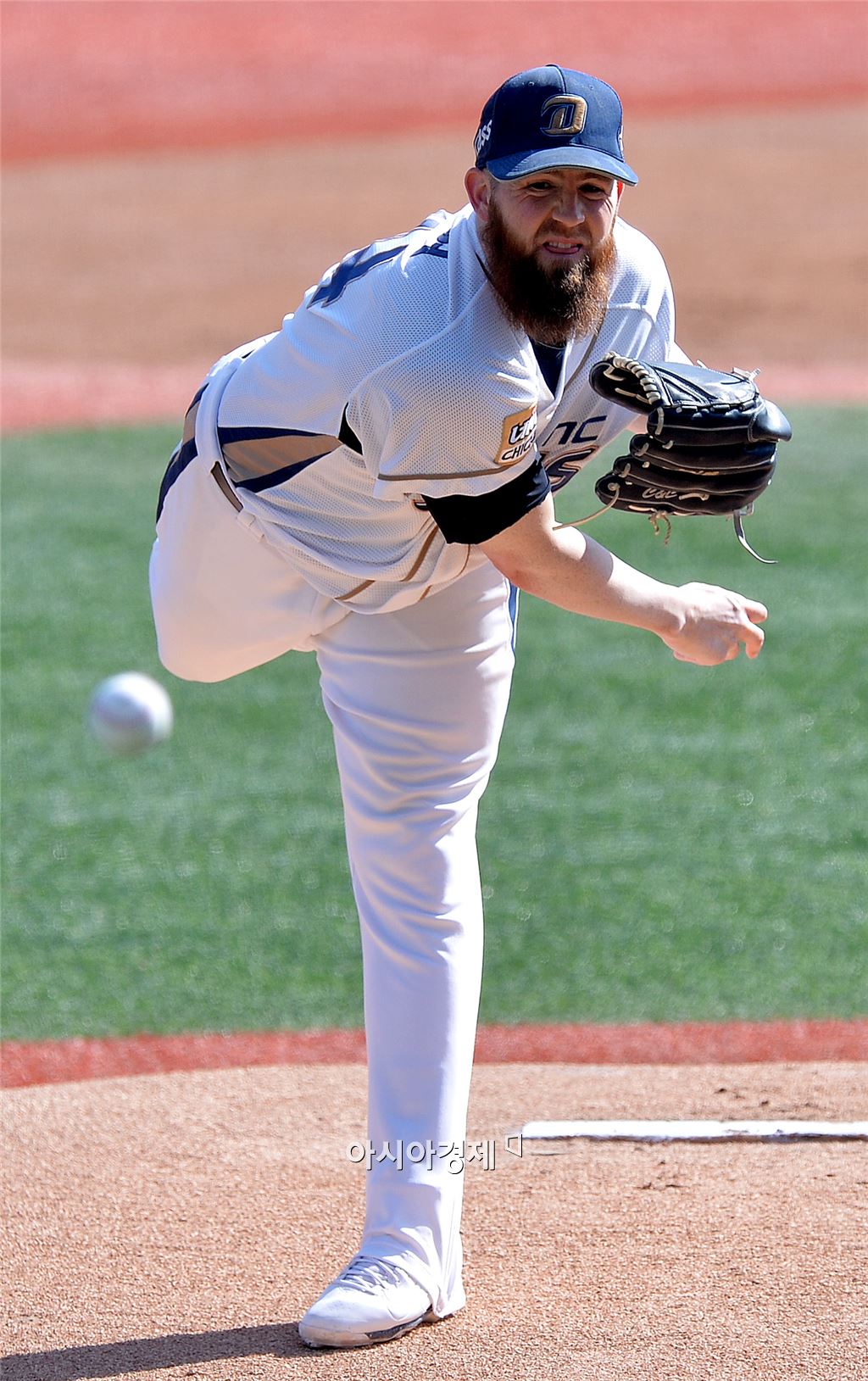 [마산=아시아경제 김현민 기자] 프로야구 2015 포스트시즌 두산 베어스와 NC 다이노스의 플레이오프 1차전이 18일 마산야구장에서 열렸다. NC 선발투수 해커가 역투하고 있다. 김현민 기자 kimhyun81@asiae.co.kr<ⓒ세계를 보는 창 경제를 보는 눈, 아시아경제(www.asiae.co.kr) 무단전재 배포금지>