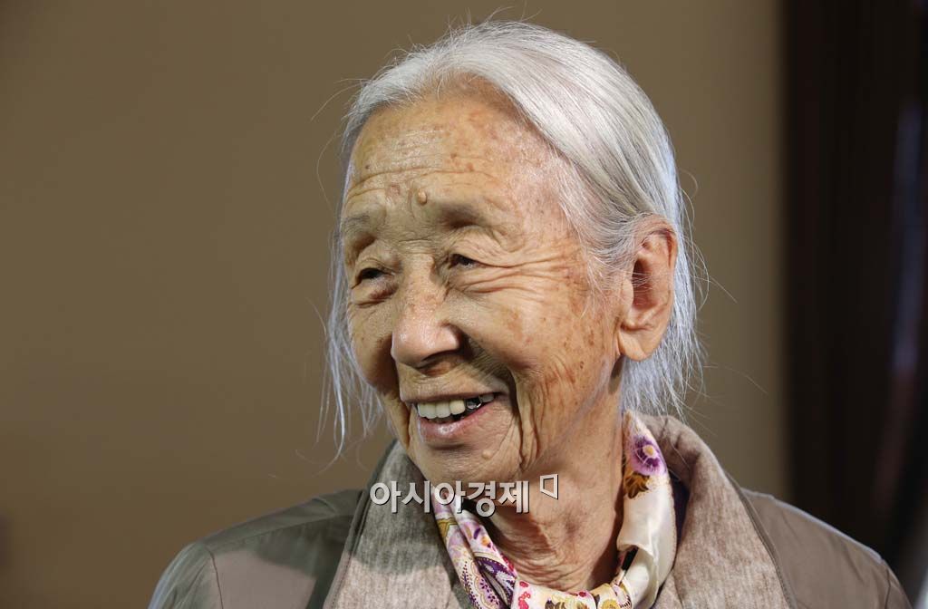 [아시아경제 ] 제20차 이산가족상봉 행사를 하루 앞둔 19일 오후 강원 속초시 한화리조트에 도착한 남측방문단 가족 중 남편을 만나러 가는 이순규 할머니가 취재진의 질문에 답하며 환하게 웃고 있다./사진공동취재단 <ⓒ세계를 보는 창 경제를 보는 눈, 아시아경제(www.asiae.co.kr) 무단전재 배포금지>