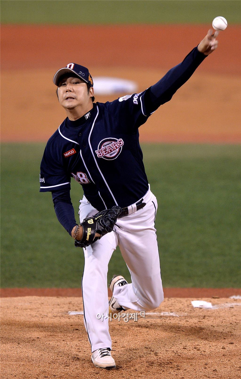[마산=아시아경제 김현민 기자] 프로야구 2015 포스트시즌 두산 베어스와 NC 다이노스의 플레이오프 2차전이 19일 마산구장에서 열렸다. 두산 선발투수 장원준이 역투하고 있다. 김현민 기자 kimhyun81@asiae.co.kr<ⓒ세계를 보는 창 경제를 보는 눈, 아시아경제(www.asiae.co.kr) 무단전재 배포금지>