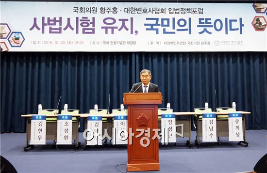 새정치민주연합 황주홍의원(장흥·영암·강진)이 20일 오전 10시에 국회 헌정기념관에서 ‘사법시험 유지, 국민의 뜻이다’를 주제로 대한변호사협회와 공동으로 입법정책포럼을 개최했다.<br />