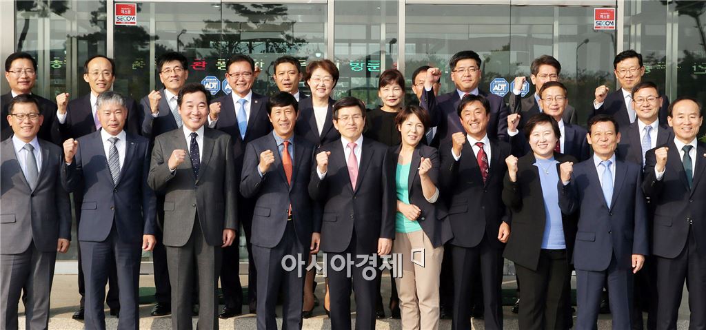 제2차 규제개혁점검회의가 20일 광주 테크노파크 본부동 대회의실에서 열렸다. 황교안 국무총리, 윤성규 환경부장관, 추경호 국무조정실장, 윤장현 광주광역시장, 이낙연 전남도지사 등이 참석자들이 기념촬영하고 있다.