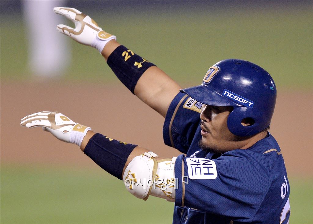 [포토]역전 1타점 세리머니하는 NC 이호준
