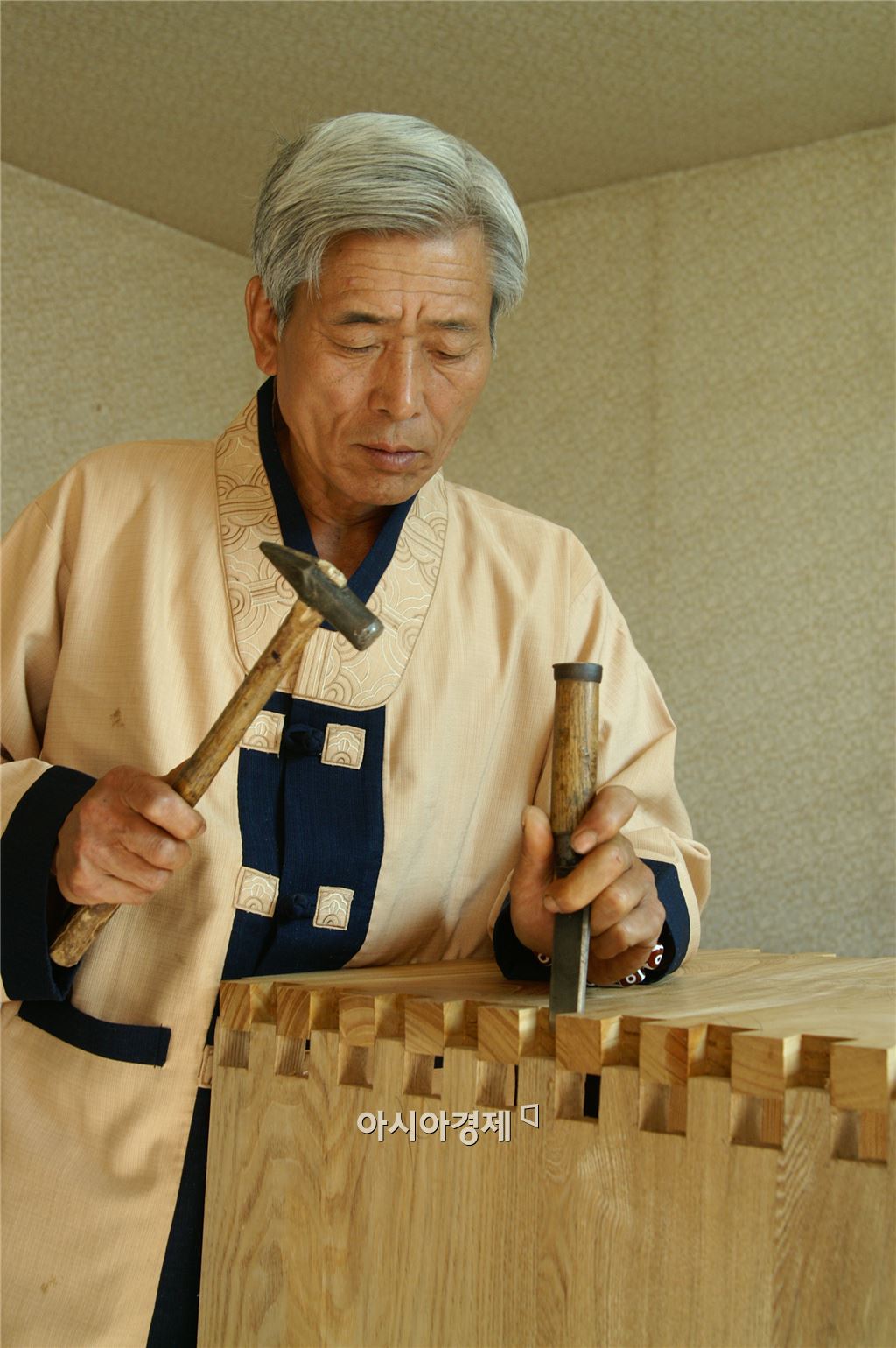 ▲제 26호 소목장 김창식 보유자 시연 모습(제공=서울시)