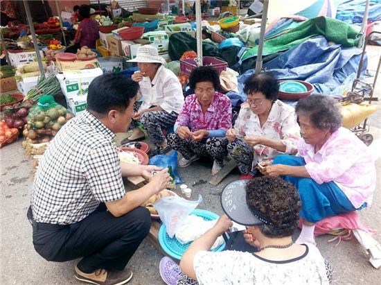[윤 장군은 틈만 나면 장터와 노인정, 포구, 논밭을 찾아다니며 주민들의 이야기를 경청한다. 귀가 제대로 열려야 입도 정직해진다는 게 그의 한결같은 믿음이다.]