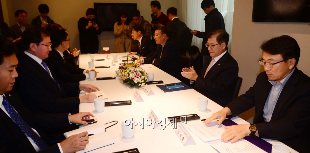 [아시아경제 최우창 기자] 정진엽 보건복지부 장관이 26일 오후 서울 정동 달개비에서 추무진 대한의사협회장 등 관계자들과 가진 면담에서 인사말을 듣고 있다.최우창 기자 smicer@asiae.co.kr<ⓒ세계를 보는 창 경제를 보는 눈, 아시아경제(www.asiae.co.kr) 무단전재 배포금지>