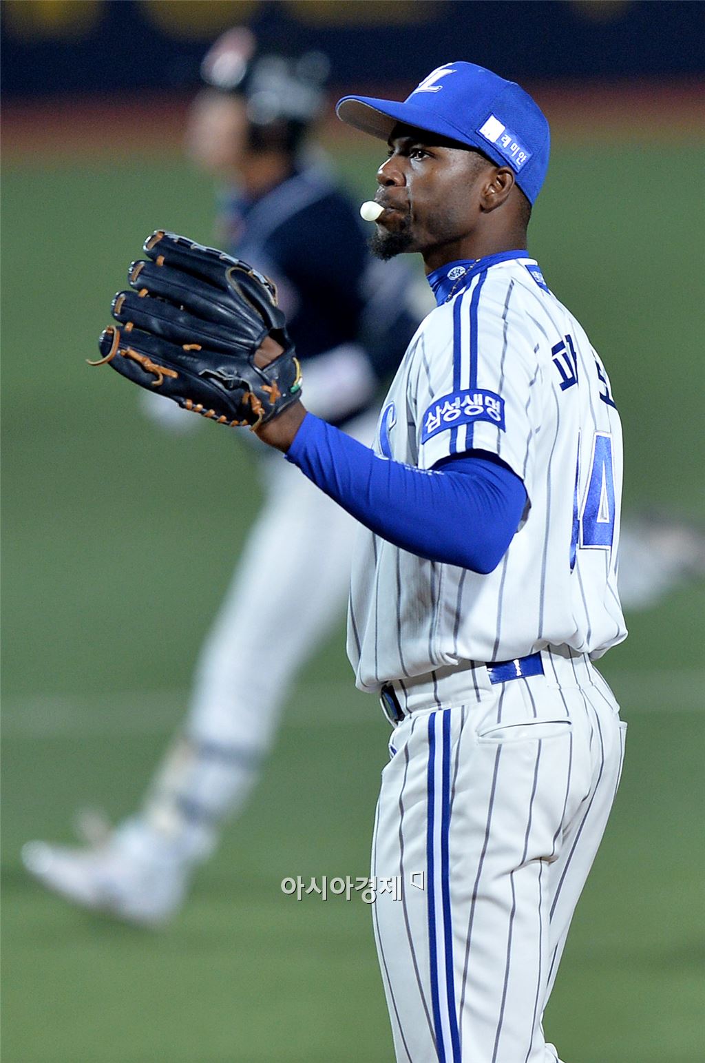 [대구=아시아경제 김현민 기자] 프로야구 2015 포스트시즌 두산 베어스와 삼성 라이온즈의 한국시리즈 1차전이 26일 대구구장에서 열렸다. 삼성 선발 피가로가 1회초 1사에서 두산 허경민에게 선제 솔로 홈런을 허용하고 있다. 김현민 기자 kimhyun81@asiae.co.kr<ⓒ세계를 보는 창 경제를 보는 눈, 아시아경제(www.asiae.co.kr) 무단전재 배포금지>