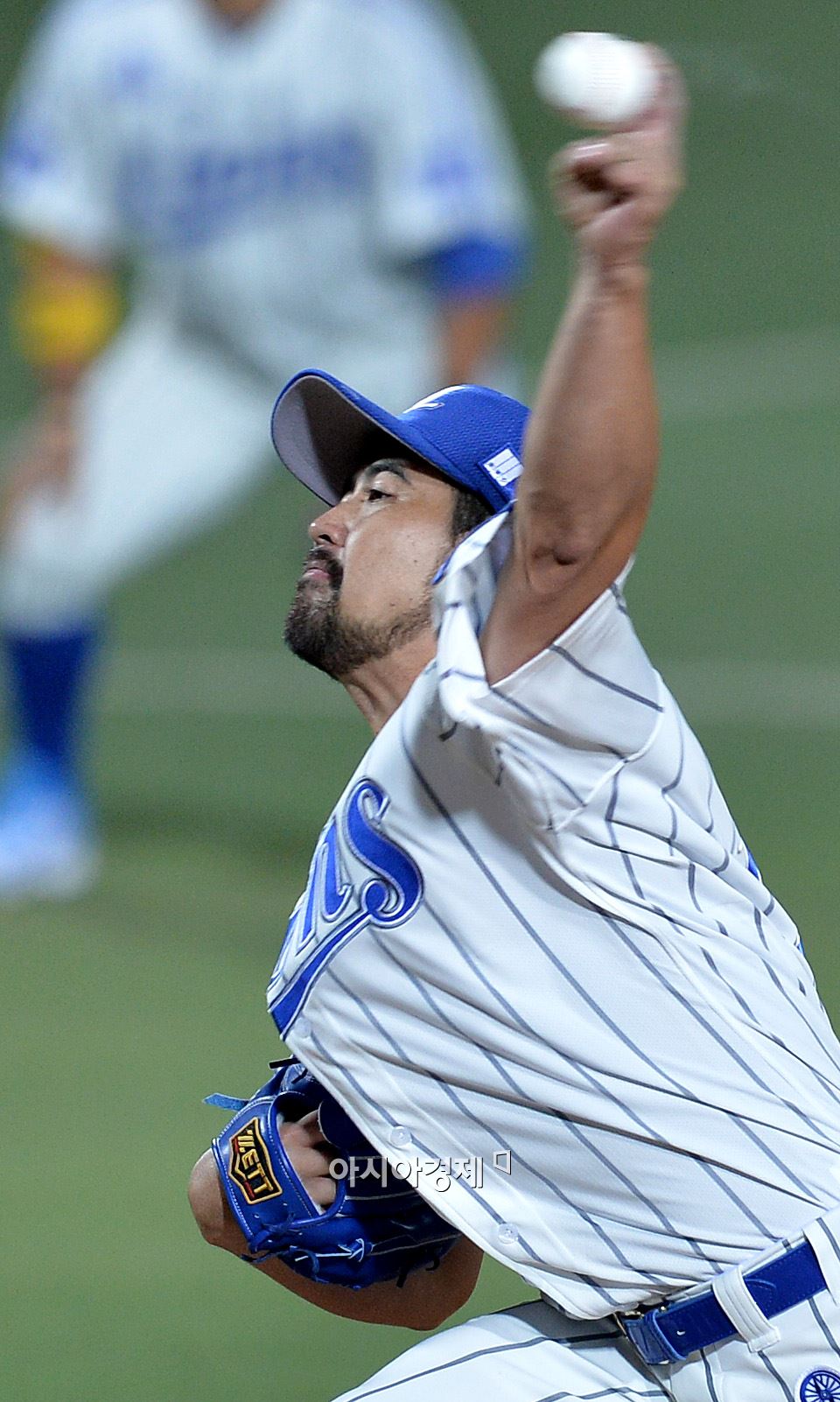 [대구=아시아경제 김현민 기자] 프로야구 2015 포스트시즌 두산 베어스와 삼성 라이온즈의 한국시리즈 2차전이 27일 대구구장에서 열렸다. 삼성 선발투수 장원삼이 역투하고 있다. 김현민 기자 kimhyun81@asiae.co.kr<ⓒ세계를 보는 창 경제를 보는 눈, 아시아경제(www.asiae.co.kr) 무단전재 배포금지>