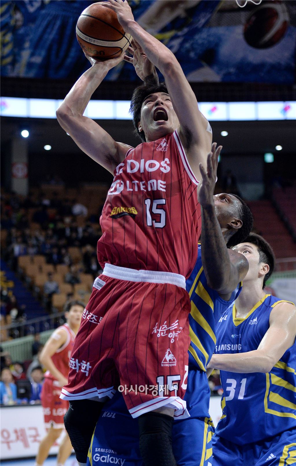 [잠실=아시아경제 김현민 기자] 2015-2016 프로농구 서울 삼성과 창원 LG의 경기가 28일 잠실실내체육관에서 열렸다. LG 김종규가 상대 라틀리프의 수비를 뚫고 공격하고 있다. 김현민 기자 kimhyun81@asiae.co.kr<ⓒ세계를 보는 창 경제를 보는 눈, 아시아경제(www.asiae.co.kr) 무단전재 배포금지>