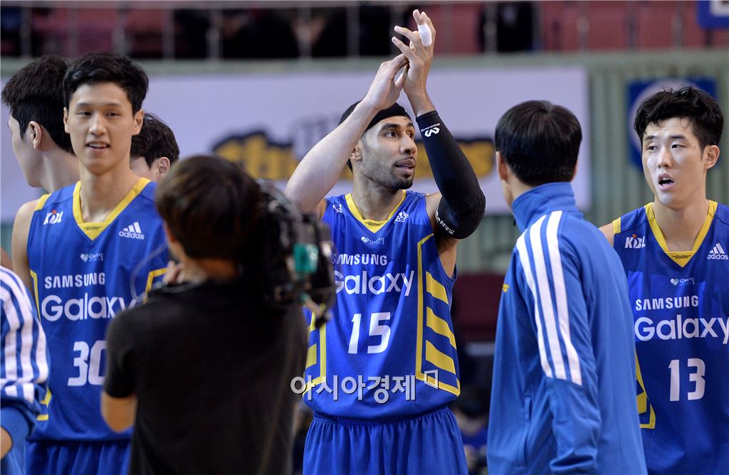 [잠실=아시아경제 김현민 기자] 2015-2016 프로농구 서울 삼성과 창원 LG의 경기가 28일 잠실실내체육관에서 열렸다. 삼성 문태영이 팀의 78-73 승리를 확정한 뒤 박수를 치고 있다. 김현민 기자 kimhyun81@asiae.co.kr<ⓒ세계를 보는 창 경제를 보는 눈, 아시아경제(www.asiae.co.kr) 무단전재 배포금지>