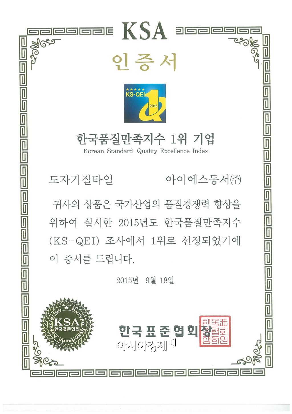 아이에스동서, 한국사용품질지수(KS-QEI) 1위 기업 선정