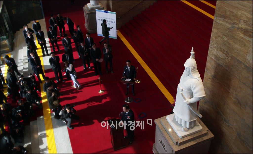 [아시아경제 윤동주 기자] 2일 서울 국회 본관에 새로 제작된 충무공상 동상이 공개되고 있다. 기존의 이순신 장군 동상은 우리나라 전통 복식과 다르게 중국식 갑옷과 일본도를 차고 있다는 지적이 꾸준히 제기되어, 임진왜란 당시 복식과 갑옷 등을 적용해 새로히 제작되었다.윤동주 기자 doso7@asiae.co.kr<ⓒ세계를 보는 창 경제를 보는 눈, 아시아경제(www.asiae.co.kr) 무단전재 배포금지>
