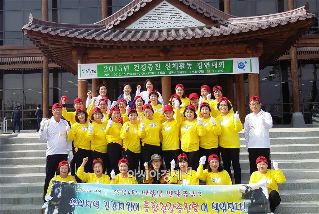[아시아경제 이진택 기자]구례군(군수 서기동)은 지난 10월 29일 무안군 남악 남도소리 울림터에서 실시한 2015년 보건사업 경연대회에서 우수상을 받았다. 전남도에서 주최하고 22개 시군에서 참가한 이번 대회는 매년 10월 실시하며 우수한 성적을 거둔 시군은 지역사회 통합건강증진사업 평가 시 가점을 받게 된다. 건강생활실천사업의 일환인 비만탈출 프로그램 참여자 등 25명으로 구성된 바람난 반달곰팀은 지난 8월부터 비만탈출 프로그램을 통해 꾸준히 신체활동 지도를 받아 이번 대회에서 우수상을 받는 쾌거를 이루었다. 한편 보건의료원 건강증진센터는 운동, 영양, 금연상담사와 건강매니저 등 분야별 전문 상담사를 배치하여 군민 누구나 통합 건강 상담을 받을 수 있도록 원스톱 서비스를 제공하고 있다. 이진택 기자 <ⓒ세계를 보는 창 경제를 보는 눈, 아시아경제(www.asiae.co.kr) 무단전재 배포금지>