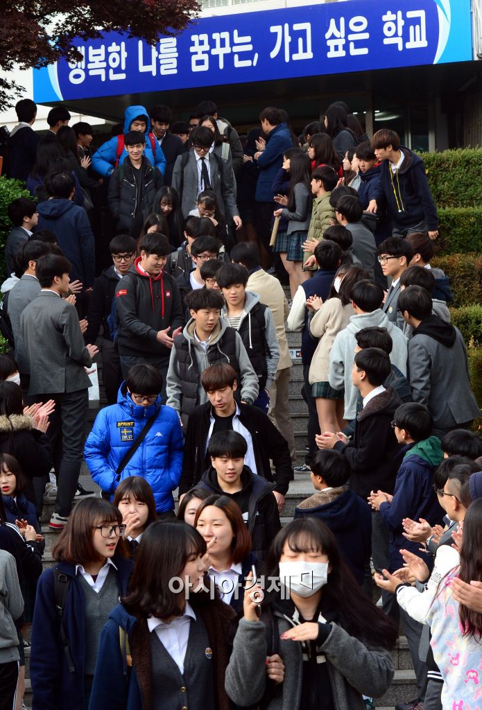 [포토]하교하는 수험생들....후배들의 응원을 받으며