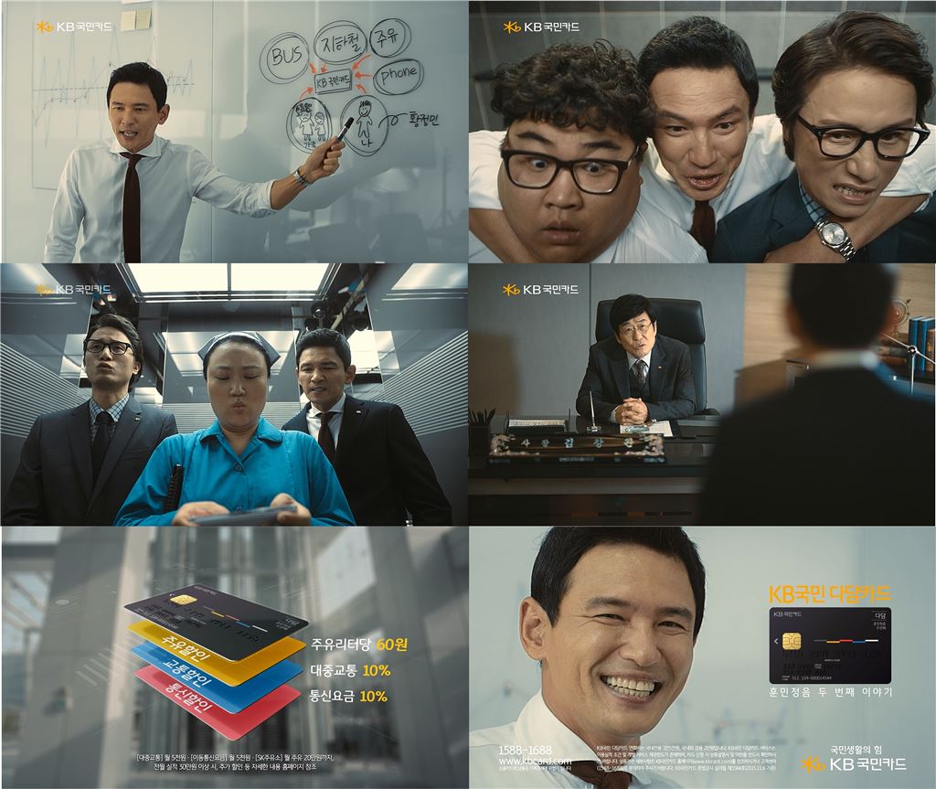 [아시아경제 이현주 기자] KB국민카드는 'KB국민 다담카드'의 새로운 광고를 12일 선보였다. 상품 개발 과정에서 카드 혜택과 관련해 벌어진 다양한 에피소드를 담아냈다. 이번 광고는 '용감하게 다 담았다'라는 메인 카피 아래 4개의 에피소드를 한 편의 드라마처럼 구성한 것이 특징이다. 적립은 물론 보상(리워드) 등 다양한 혜택을 한 장의 카드에 담은 KB국민 다담카드의 특징을 잘 표현했다. 특히 배우 황정민과 송새벽, 가수 겸 연기자 김창완이 각각 상품개발 팀장, 대리, 사장으로 등장해 눈길을 끈다. 드라마 형식의 이번 광고는 각각 4개의 에피소드를 유기적으로 연결했다. 이번 광고는 TV, 케이블TV, 극장, 온라인 매체 등을 통해 연말까지 방영될 예정이며, KB국민카드 홈페이지와 유튜브에서도 볼 수 있다.KB국민카드 관계자는 "이번 광고에서는 상품의 특징과 혜택을 일일이 나열하기 보다는 상품 개발 과정을 위트 있게 보여 줌으로써 고객들의 자연스러운 관심과 공감을 얻고자 했다"며 "기라성 같은 세 명의 배우들이 펼치는 연기도 광고를 보는 또 다른 재미가 될 것으로 기대한다"고 말했다.이현주 기자 ecolhj@asiae.co.kr<ⓒ세계를 보는 창 경제를 보는 눈, 아시아경제(www.asiae.co.kr) 무단전재 배포금지>이현주 기자 ecolhj@asiae.co.kr<ⓒ아시아 대표 석간 '아시아경제' (www.newsva.co.kr) 무단전재 배포금지>