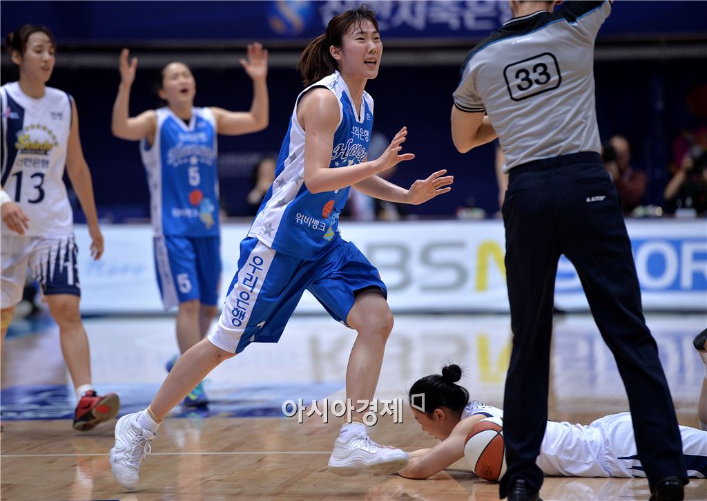 [인천=아시아경제 김현민 기자] '2015-2016 KDB생명 여자프로농구' 신한은행과 우리은행의 경기가 13일 인천 도원체육관에서 열렸다. 우리은행 박혜진이 심판에 어필하고 있다. 김현민 기자 kimhyun81@asiae.co.kr<ⓒ세계를 보는 창 경제를 보는 눈, 아시아경제(www.asiae.co.kr) 무단전재 배포금지>