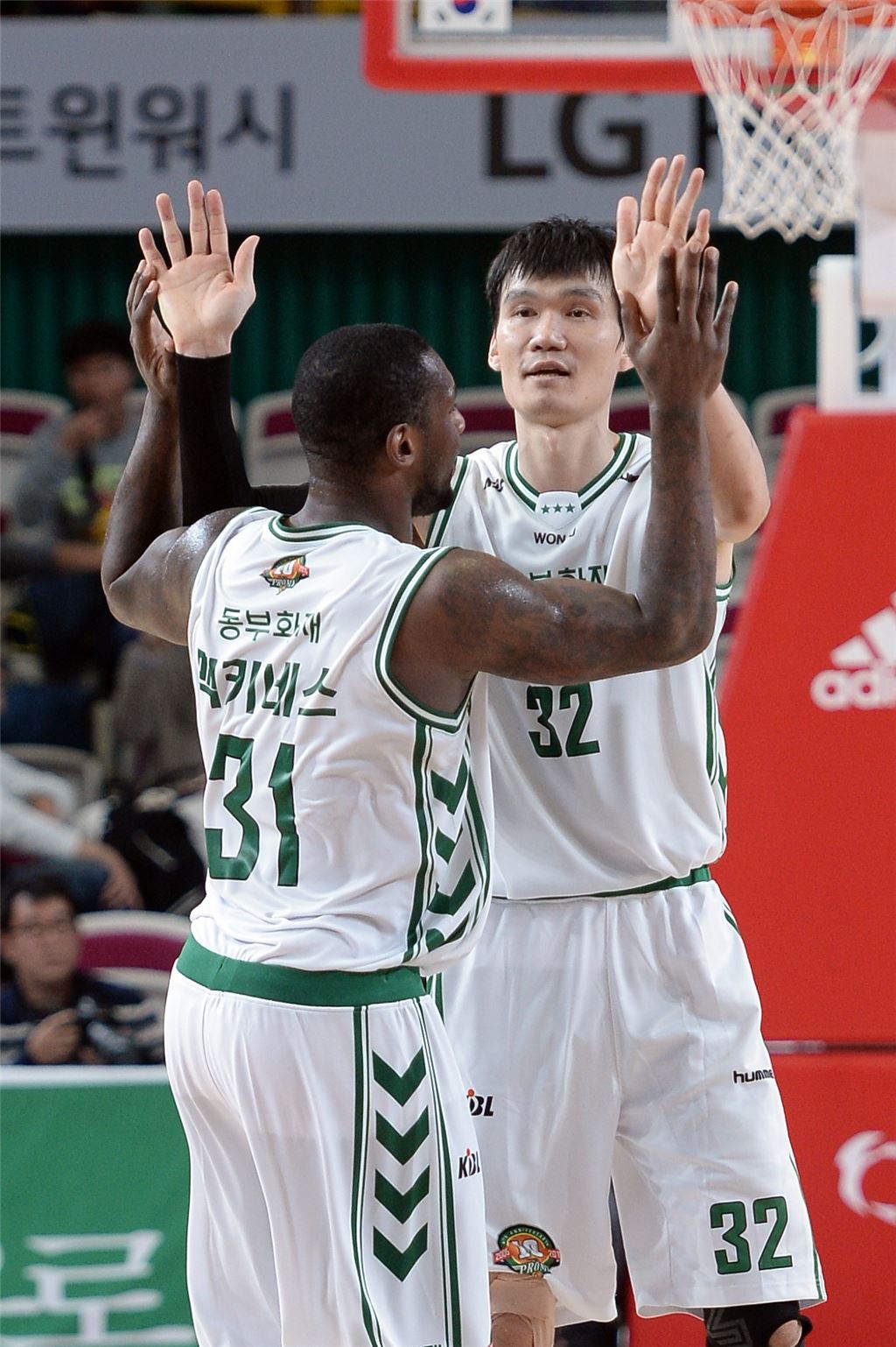 동부 김주성과 맥키네스, 사진=KBL 제공