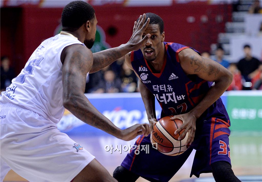 [고양=아시아경제 김현민 기자] 2015-2016 프로농구 고양 오리온과 전주 KCC의 경기가 15일 고양체육관에서 열렸다. 고양 헤인즈가 상대 포웰의 수비를 뚫고 공격하고 있다. 김현민 기자 kimhyun81@asiae.co.kr<ⓒ세계를 보는 창 경제를 보는 눈, 아시아경제(www.asiae.co.kr) 무단전재 배포금지>