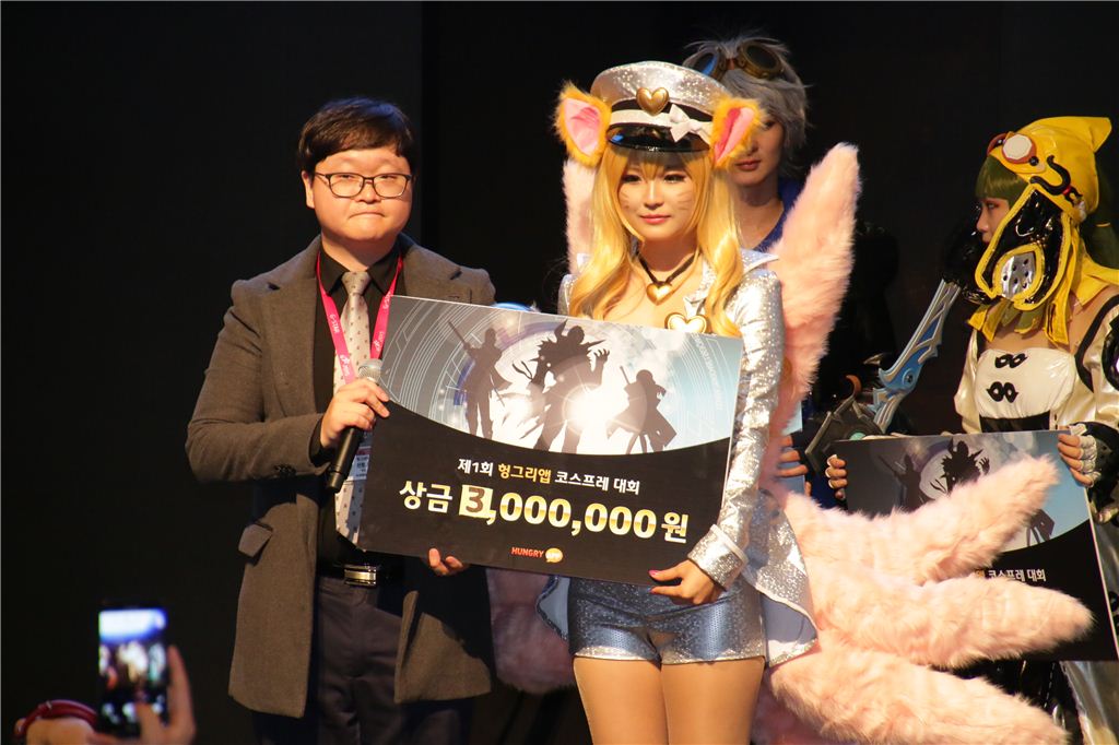 [아시아경제 온라인이슈팀] 부산 벡스코에서 열린 지스타 2015 헝그리앱배 아마추어 코스프레 결선 대회가 15일 펼쳐져 영예의 대상 수상 팀이 가려졌다.헝그리앱이 주최한 아마추어 코스프레 대회는 치열한 예선 무대를 뚫고 선정된 ‘소환사의 협곡에 눈이 내린다면 팀’과 ‘서머너 팀’, ‘아이캐치 팀’, ‘누나 갱간다 팀’이 결선 무대에서 경합을 벌였다. 이날 결선 무대의 우승에는 ‘누나 갱간다 팀’이 선정되어 총상금 300만원의 주인공이 됐다. ‘누나 갱간다 팀’은 정교한 복장 재현과 화려한 퍼포먼스로 높은 점수를 받았다. 이와 함께 2위에는 ‘아이캐치 팀’이, 3위에는 ‘소환사의 협곡에 눈이 내린다면 팀’ 및 ‘서머너 팀’이 선정되어 각각 100만원과 50만원을 상금으로 획득했다. 한편, 헝그리앱은 지스타 2015 마지막 날을 맞아 특별 방송 ‘월드 오브 탱크 블리츠’를 진행했다. ‘월드 오브 탱크 블리츠’에서 게임전문 MC 오성균과 VJ겸 MC 레나는 ‘월탱블리츠 퀴즈’, ‘메시지 빨리 보내기’, ‘내가 제일 잘 나가’ 등 다양한 코너로 게이머들과 직접 소통했다.온라인이슈팀 issue@asiae.co.kr<ⓒ세계를 보는 창 경제를 보는 눈, 아시아경제(www.asiae.co.kr) 무단전재 배포금지>