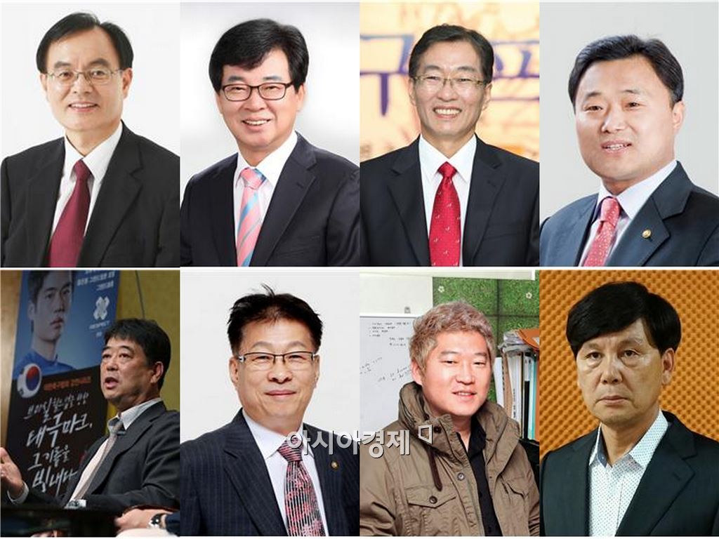 사진 왼쪽부터 ▲임우진 서구청장 ▲김 성 전라남도 장흥군수 ▲강동완 조선대학교 치의학전문대학원 교수 ▲이 진 한국사회봉사연합회장 ▲기영옥 광주FC단장 ▲김중대 새누리당 전남도당위원장 ▲김영조 한디자인 대표 ▲박상훈 뜻모아 소리모아 단장. 사진=지역발전연구원<br />