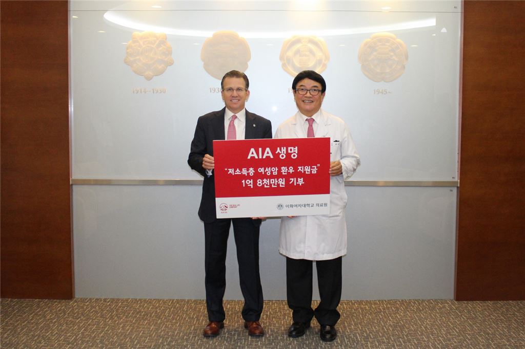 [아시아경제 권용민 기자] 이화여자대학교 의료원이 다국적 생명보험사인 AIA생명 한국지점과 함께 저소득층 여성암 환자들을 위한 지원 사업에 나선다.이화여자대학교 의료원은 16일 이대여성암병원 다목적실에서 '저소득층 여성암 환우 암 극복 지원금 전달식'을 개최하고 AIA생명으로부터 1억8000만원을 전달 받았다. 이날 전달식에는 백남선 이대여성암병원장과 AIA생명의 다니엘 코스텔로 대표를 비롯한 양측 관계자들이 참석해 지속적인 협력을 약속했다.이화여자대학교 의료원은 이번 여성암 환우 암 극복 지원금을 통해 여성암 진단을 받은 저소득층 환우를 대상으로 입원비 및 외래 치료비로 1인당 최대 450만원을 후원할 예정이다. 또한 30세부터 70세 저소득층 여성 70명을 대상으로 기본 건강검진을 비롯한 갑상선암, 유방암, 자궁암, 난소암 등 여성암 무료 검진 사업을 실시할 계획이며 여성암 환우와 함께하는 ‘힐링여행’ 프로그램도 지원한다.백남선 이대여성암병원장은 "AIA생명의 후원을 통해 경제적인 어려움을 겪는 여성암 환우들이 암을 극복하는 데 큰 도움이 될 것"이라며 "여성암을 전문적으로 치료하는 국내 여성암 치료 대표 병원으로서 앞으로도 지속적으로 여성암 예방과 치료, 여성 건강 증진을 위해 최선의 노력을 기울이겠다"고 말했다.한편 여성암 치료를 선도하고 있는 이화여자대학교 의료원은 지난해부터‘여성을 행복하게, 사회를 건강하게’라는 슬로건 아래 여성건강 증진을 위한 여성건강 캠페인을 전개하며 생애 주기별 여성의 건강을 위한 다양한 연구와 치료 그리고 솔루션을 제공하고 있다.여성 대상 마케팅 및 사회공헌활동에 힘써온 AIA생명은 최근 여성의 건강한 삶을 도모하는 여성 특화 마케팅 프로그램인 'AIA투게더'를 런칭한 바 있으며, 이대여성암병원 의료진과 여성 건강 관련 전문 컨텐츠 제휴 등 다양한 방법을 모색해 여성암 예방 및 극복을 위한 다양한 사회공헌활동과 여성의 건강한 삶을 위한 적극적인 지원 활동을 펼치고 있다.권용민 기자 festym@asiae.co.kr<ⓒ세계를 보는 창 경제를 보는 눈, 아시아경제(www.asiae.co.kr) 무단전재 배포금지>