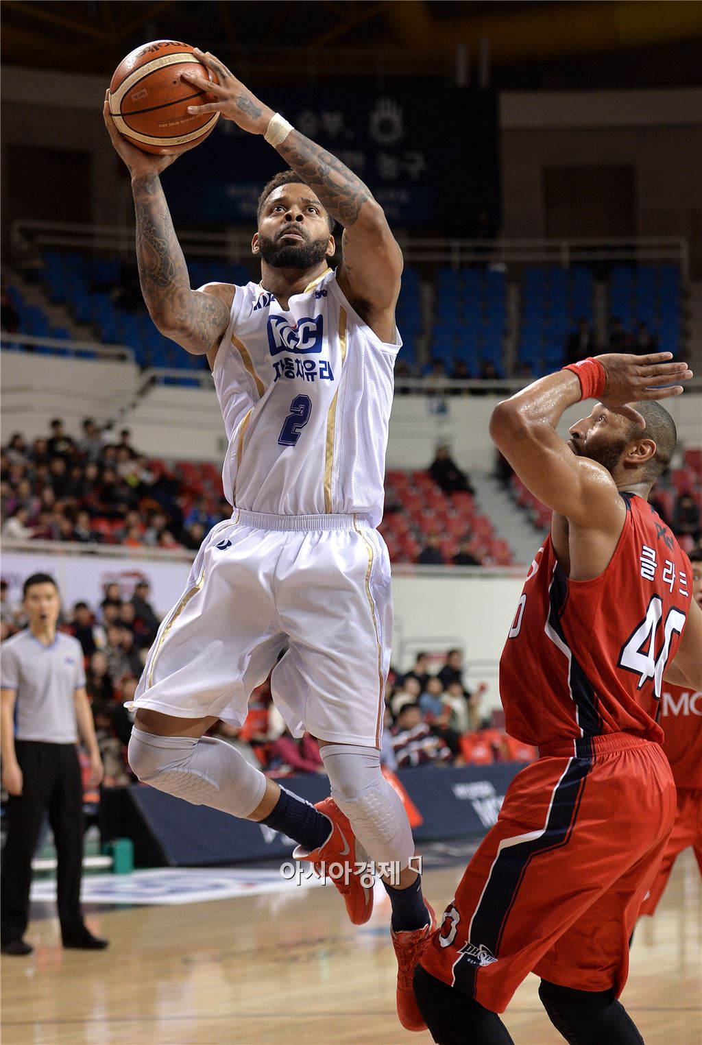 [울산=아시아경제 김현민 기자] 2015-2016 프로농구 울산 모비스와 전주 KCC의 경기가 19일 울산 동천체육관에서 열렸다. KCC 에밋이 상대 클라크의 수비를 뚫고 공격하고 있다. 김현민 기자 kimhyun81@asiae.co.kr<ⓒ세계를 보는 창 경제를 보는 눈, 아시아경제(www.asiae.co.kr) 무단전재 배포금지>