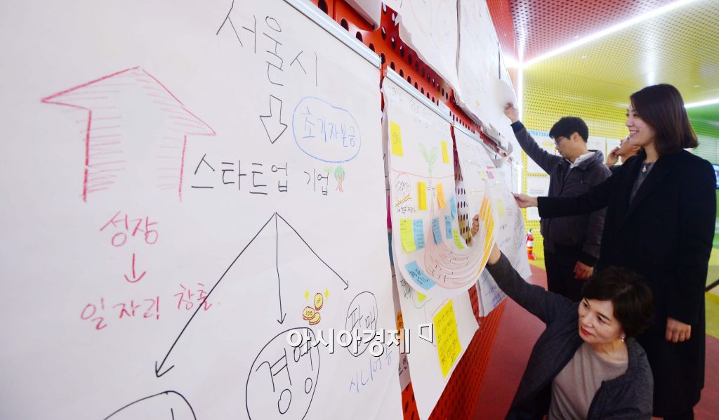 [아시아경제 최우창 기자] 20일 서울시청 시민청에서 시민들이 직접 제안한 일자리 아이디어를 전시한 가운데 시민들이 구경을 하고 있다.이번 전시는 지난 한국외국어대학교에서 열린 '서울 일자리 아이디어톤-서울시장과 신나는 잡담(JOB談)'에서 만든 일자리 창출 아이디어 중 70여점을 전시한 것이다.최우창 기자 smicer@asiae.co.kr<ⓒ세계를 보는 창 경제를 보는 눈, 아시아경제(www.asiae.co.kr) 무단전재 배포금지>