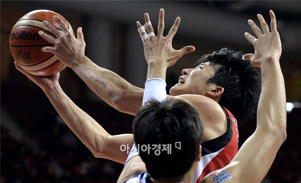 [안양=아시아경제 김현민 기자] 2015-2016 프로농구 안양 KGC인삼공사와 인천 전자랜드의 경기가 20일 안양실내체육관에서 열렸다. KGC 강병현이 상대 정효근의 수비를 뚫고 공격하고 있다. 김현민 기자 kimhyun81@asiae.co.kr<ⓒ세계를 보는 창 경제를 보는 눈, 아시아경제(www.asiae.co.kr) 무단전재 배포금지>
