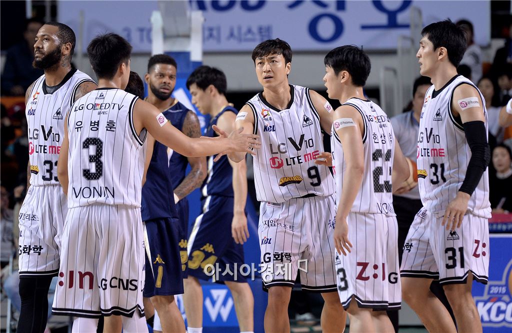 [전주=아시아경제 김현민 기자] 2015-2016 프로농구 전주 KCC와 창원 LG의 경기가 22일 전주실내체육관에서 열렸다. LG 김영환이 득점한 뒤 동료들과 하이파이브하고 있다. 김현민 기자 kimhyun81@asiae.co.kr<ⓒ세계를 보는 창 경제를 보는 눈, 아시아경제(www.asiae.co.kr) 무단전재 배포금지>