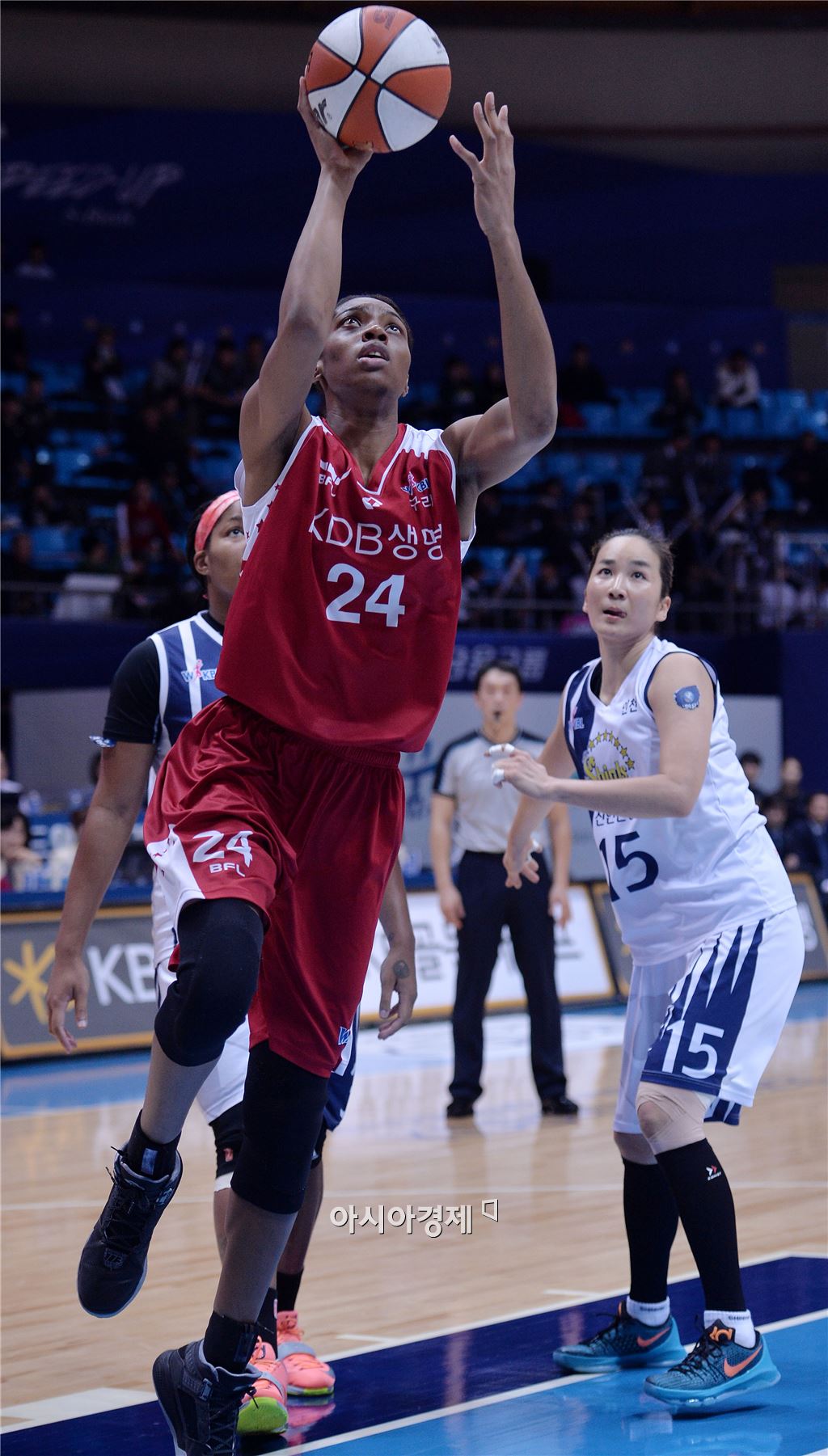 [인천=아시아경제 김현민 기자] '2015-2016 KDB생명 여자프로농구' 신한은행과 KDB생명의 경기가 23일 인천 도원체육관에서 열렸다. KDB생명 비키바흐가 상대 수비를 뚫고 슛하고 있다. 김현민 기자 kimhyun81@asiae.co.kr<ⓒ세계를 보는 창 경제를 보는 눈, 아시아경제(www.asiae.co.kr) 무단전재 배포금지>