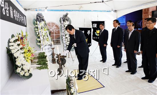 "군민회관에 분양소 마련" [아시아경제 노해섭 기자]완도군(군수 신우철)은 26일까지 완도군민회관에 故 김영삼 前 대통령 분향소를 설치 운영한다. 군은 군민들이 쉽게 찾을 수 있고 조문안내 등의 편의지원을 위해 군민회관에 분향소를 마련했다. 분향소는 오전7시부터 밤 12시까지 운영된다. 김 전 대통령에 대한 참배를 희망하는 군민은 누구나 조문이 가능하다. 신우철 군수는 군청 간부공무원들과 함께 분향소를 찾아 헌화·분향하고 김 전 대통령에 대한 애도와 명복을 빌었다.노해섭 기자 nogary@<ⓒ세계를 보는 창 경제를 보는 눈, 아시아경제(www.asiae.co.kr) 무단전재 배포금지>