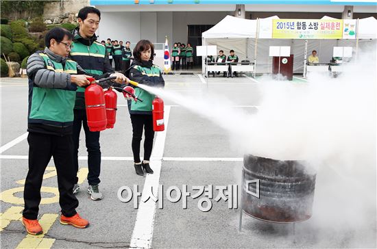 [아시아경제 노해섭 기자]함평군(군수 안병호)은 24일 군청 주차장에서 영광소방서 함평119안전센터 등과 함께 합동소방훈련을 실시했다. 이날 훈련은 화재발생시 자위소방대원들의 초기 대응능력을 강화하고 소방서와 유기적인 협조체제를 구축하기 위해 마련됐다. 직원들은 2청사 화재발생을 가정해 재난대비 실제훈련을 진행했다. 화재상황 전파와 직원 대피 유도, 중요문서 반출과 초기 화재진압 등 자위소방대원의 상황별 대처능력과 유관 기관과의 연락과 협조 등을 훈련했다. 군은 소방훈련으로 화재에 대한 경각심을 불러일으키고 만일에 방생할 수 있는 재난에 대한 대응력을 높일 계획이다. 훈련통제관인 홍영민 함평부군수는 강평에서 “우리 주위에 수많은 화재피해가 발생하고 있지만 이를 소홀히 여기는 안전불감증을 주의해야한다”며 “화재가 발생했을 때 그 피해를 최소화할 수 있도록 평소에도 적절한 대처방법을 숙지하고 있어야한다”고 강조했다. 소방훈련이 끝난 후에는 소화기 사용법과 응급구조에 대한 함평 119 안전센터 관계자의 교육도 이어졌다.노해섭 기자 nogary@<ⓒ세계를 보는 창 경제를 보는 눈, 아시아경제(www.asiae.co.kr) 무단전재 배포금지>