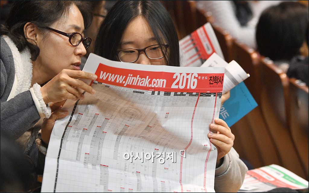 [아시아경제 윤동주 기자] 24일 서울 영등포 아트홀에서 열린 정시입시설명회에 참석한 학부모와 수험생들이 배치표를 보고 있다.윤동주 기자 doso7@asiae.co.kr<ⓒ세계를 보는 창 경제를 보는 눈, 아시아경제(www.asiae.co.kr) 무단전재 배포금지>