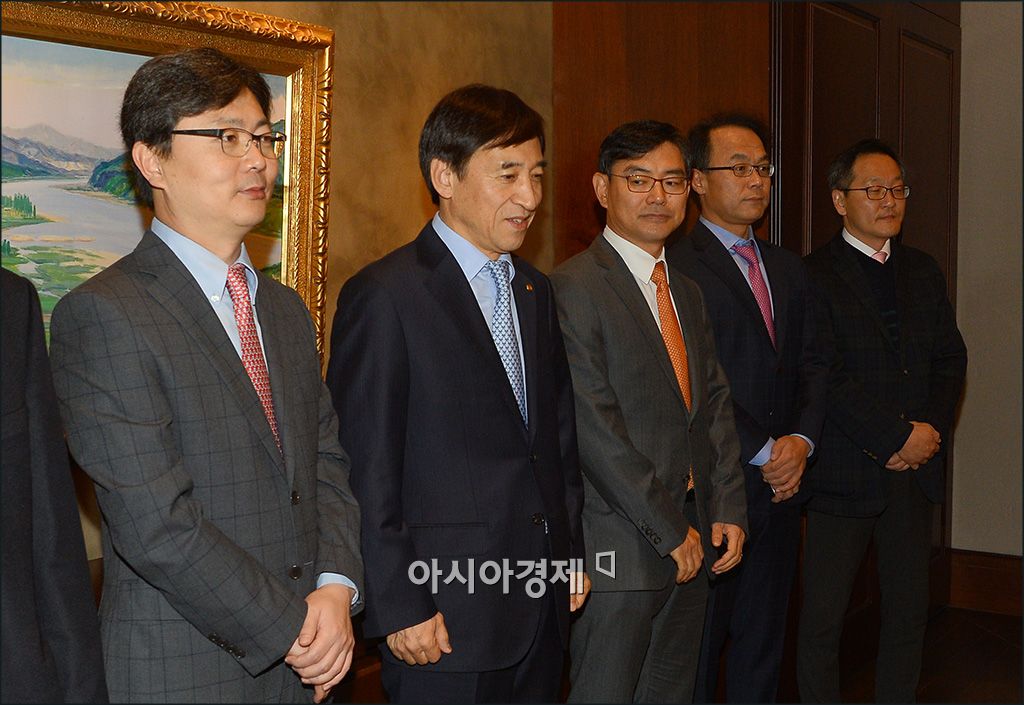 [아시아경제 윤동주 기자] 이주열 한국은행 총재가 25일 서울 중구 한국은행에서 열린 경제연구소장들과의 경제동향간담회에 참석, 참석자들과 포즈를 취하고 있다.윤동주 기자 doso7@asiae.co.kr<ⓒ세계를 보는 창 경제를 보는 눈, 아시아경제(www.asiae.co.kr) 무단전재 배포금지>