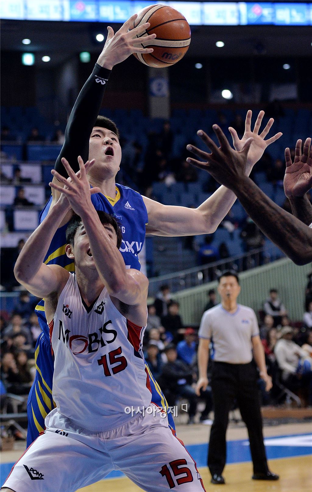 [잠실=아시아경제 김현민 기자] 2015-2016 프로농구 서울 삼성과 울산 모비스의 경기가 26일 잠실실내체육관에서 열렸다. 삼성 김준일이 상대 배수용과 리바운드를 다투고 있다. 김현민 기자 kimhyun81@asiae.co.kr<ⓒ세계를 보는 창 경제를 보는 눈, 아시아경제(www.asiae.co.kr) 무단전재 배포금지>