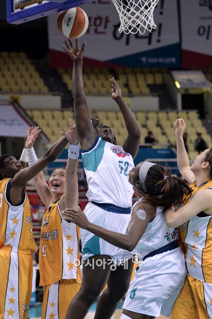 [부천=아시아경제 김현민 기자] '2015-2016 KDB생명 여자프로농구' KEB 하나은행과 KB 국민은행의 경기가 27일 부천실내체육관에서 열렸다. 하나은행 첼시 리가 상대 수비를 뚫고 공격하고 있다. 김현민 기자 kimhyun81@asiae.co.kr<ⓒ세계를 보는 창 경제를 보는 눈, 아시아경제(www.asiae.co.kr) 무단전재 배포금지>